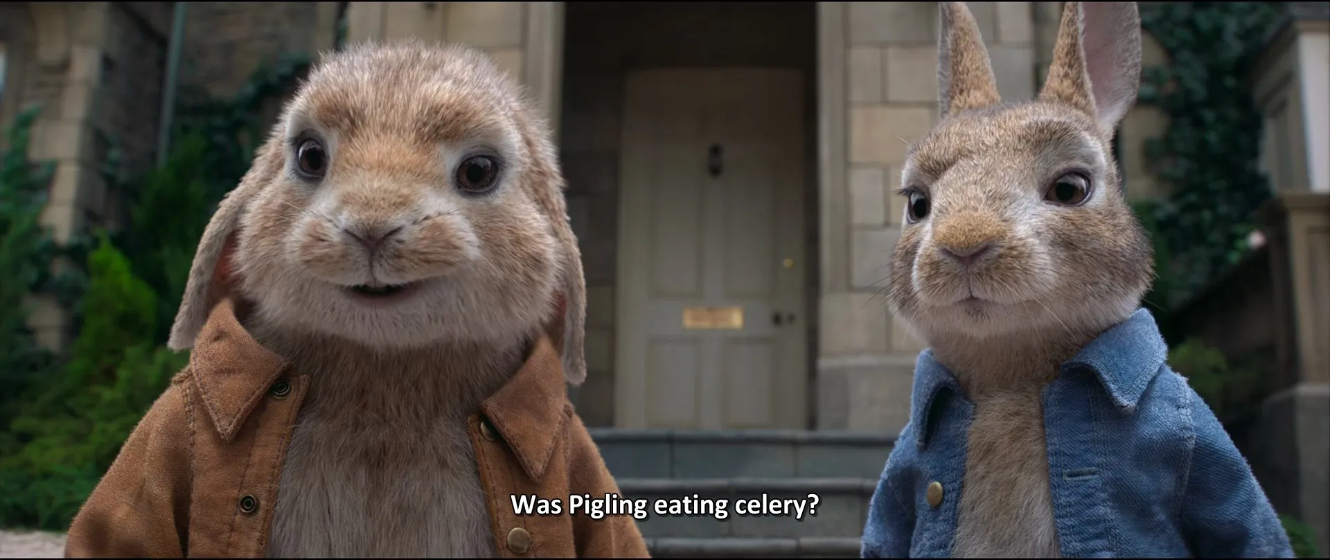 # Stars Cast: James Corden as Peter Rabbit (voice), Rose Byrne as Beatrix 'Bea' Potter / Jemima Puddle-Duck (voice), Margot Robbie as Flopsy Rabbit / Narrator (voice), Sam Neill as Mr. McGregor / Tommy Brock (voice), Domhnall Gleeson as Thomas McGregor / Mr. Jeremy Fisher (voice), Daisy Ridley as Cottontail Rabbit (voice), Elizabeth Debicki as Mopsy Rabbit (voice), Sia as Mrs. Tiggy-Winkle (voice), Felix Williamson as Derek, Fayssal Bazzi as Mr. Tod (voice), Ewen Leslie as Pigling Bland (voice), Rachel Ward as Josephine Rabbit (voice), Bryan Brown as Mr. Rabbit (voice), David Wenham as Johnny Town-Mouse (voice), Fletcher Sheridan as Singing Sparrow (voice), Marianne Jean-Baptiste as General Manager, Terenia Edwards as Siobhan, Colin Moody as Benjamin Bunny (voice), Christian Gazal as Felix D'eer (voice), Alexandra Gluck as London Street Rat (voice), Taryn Gluck as London Street Rat (voice), Will Reichelt as JW Rooster II (voice), Jessica Freedman as Singing Sparrow (voice), Shana Halligan as Singing Sparrow (voice), Katharine Hoye as Singing Sparrow (voice), Chris Mann as Singing Sparrow (voice), Chad Reisser as Singing Sparrow (voice), Vauxhall Jermaine as Jackson